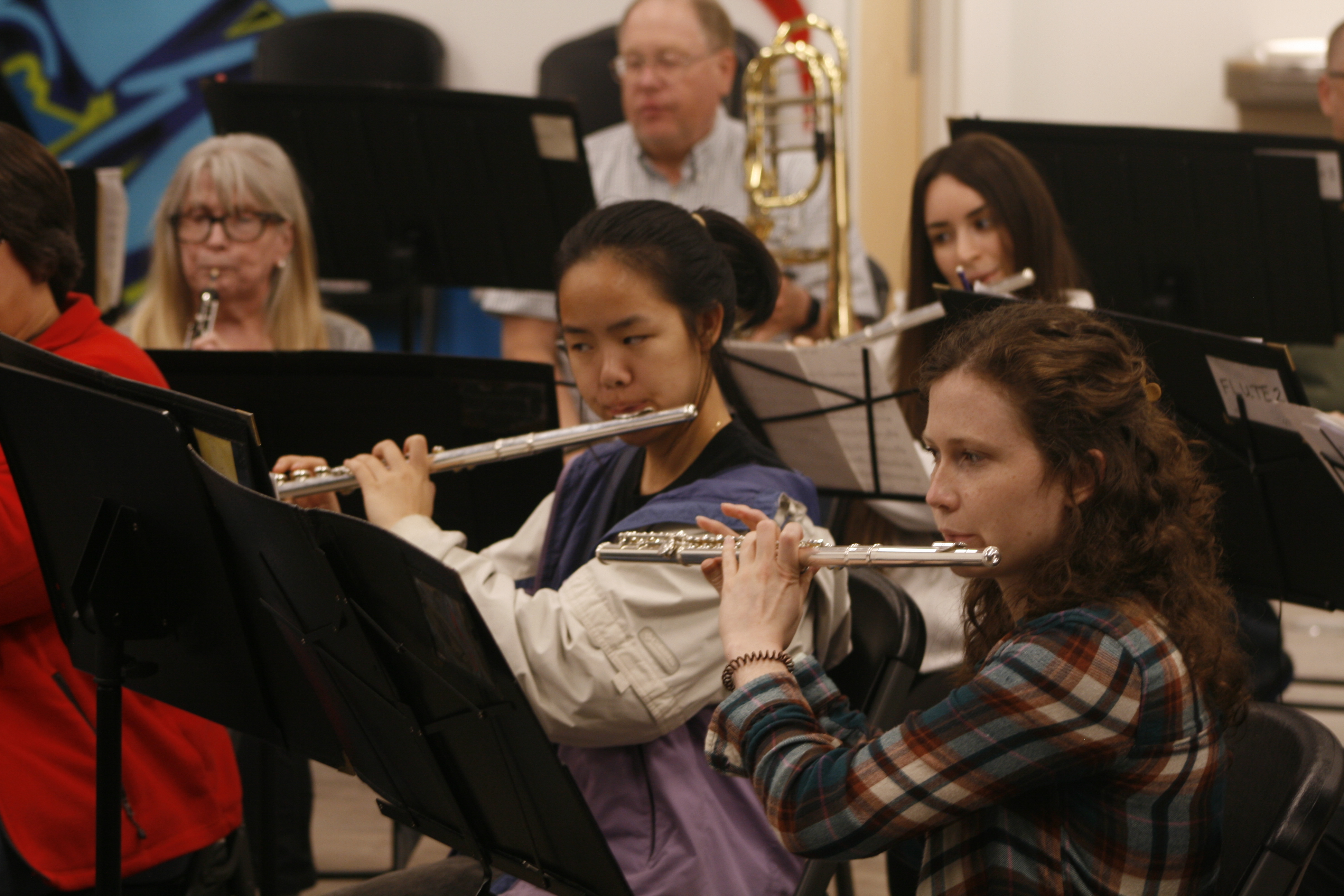 We have over 70 members, and they all come from a variety of backgrounds and professions, including teachers, doctors, engineers, computer specialists, and retirees. While some members have formal training or degrees in instrumental music, most members simply enjoy playing their instruments, performing for audiences, having fun with their fellow musicians, and enjoying the mutual satisfaction of performing great music at high levels of accomplishment.